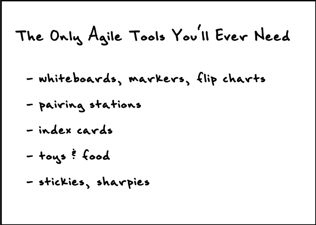 We contend that using one of these expensive software tools says, "you don't get it, and maybe shouldn't bother, because agile may not work well for you." No doubt this will perturb those of you who have found some value in agile management tools, so let's step back and talk through the issues.